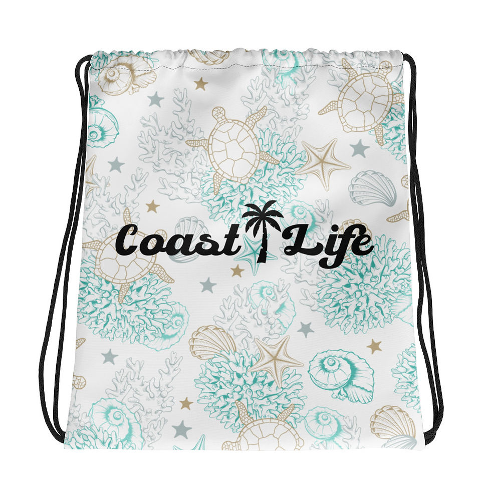 Coast Life Sea Turtle & Sea Shell Pattern Drawstring bag